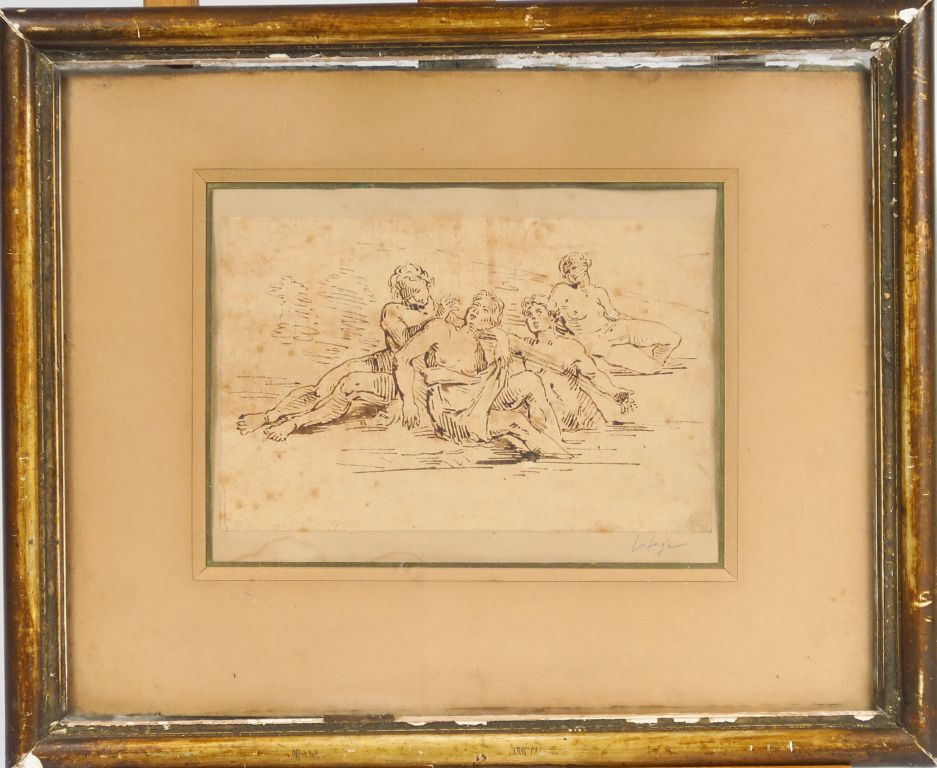 Lot de Ecole française début XIXe. "Nymphes dans un bassin". Dessin à la plum au prix de 100 à 150 € en vente aux enchères par l'hôtel des ventes Primardeco