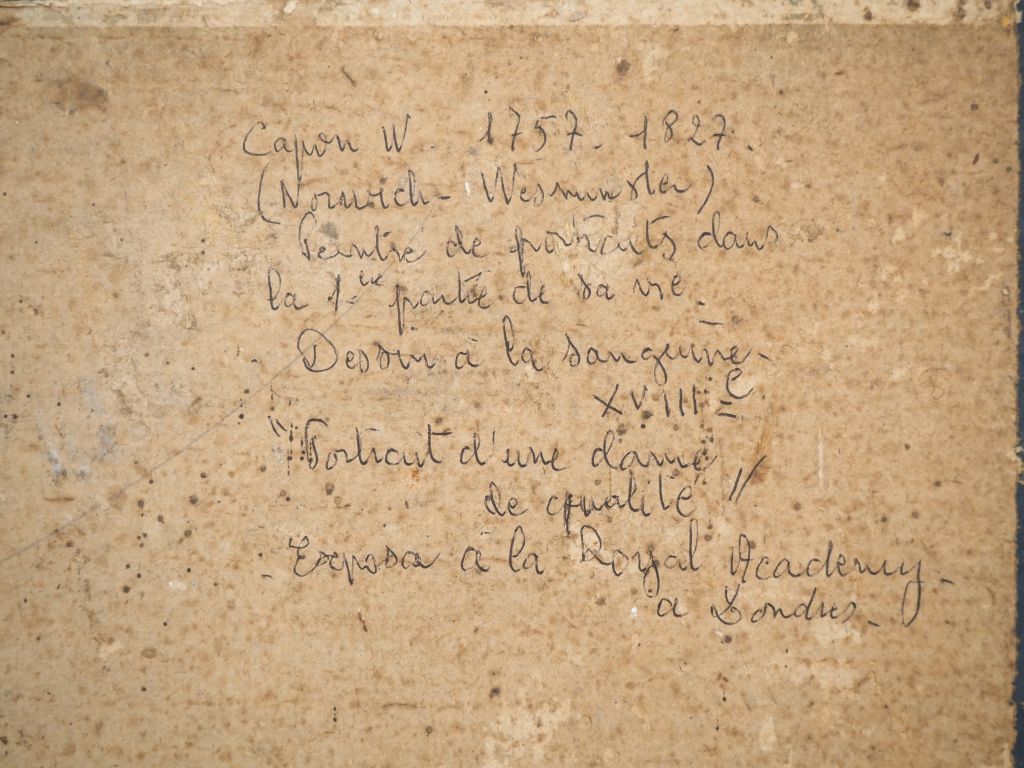 Ecole française fin XIXème. "Portrait de Marie-Antoinette". Sanguine signée en haut à droite. Dim. (à vue) : 33 x 26,5 cm.