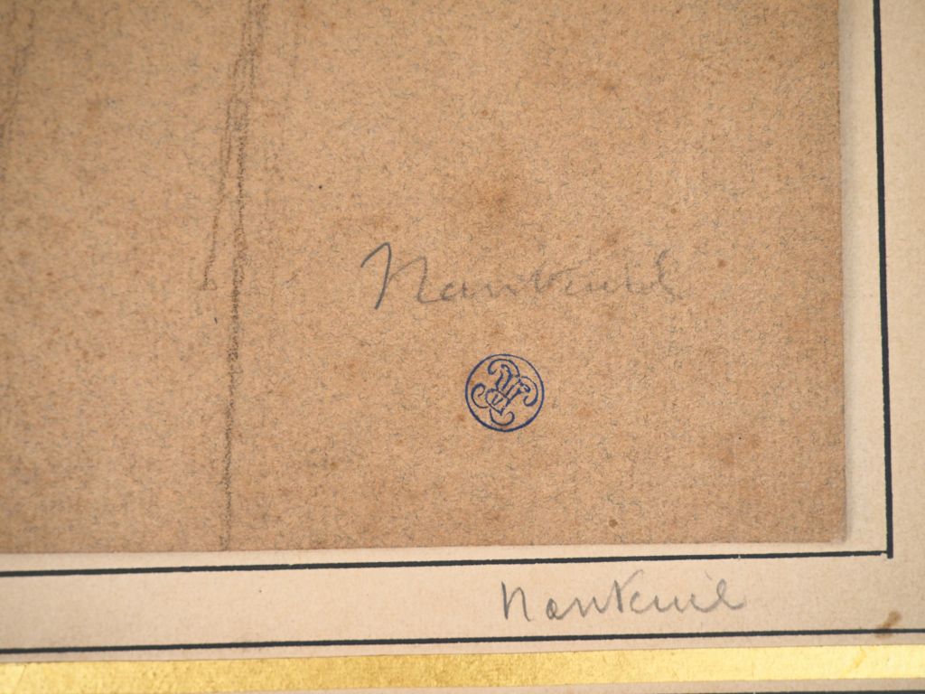 Ecole française XIXème d'après Nanteuil. "Portrait d'homme". Dessin signé et monogrammé en bas à droite. Dim. 25,5 x 19,5 cm.