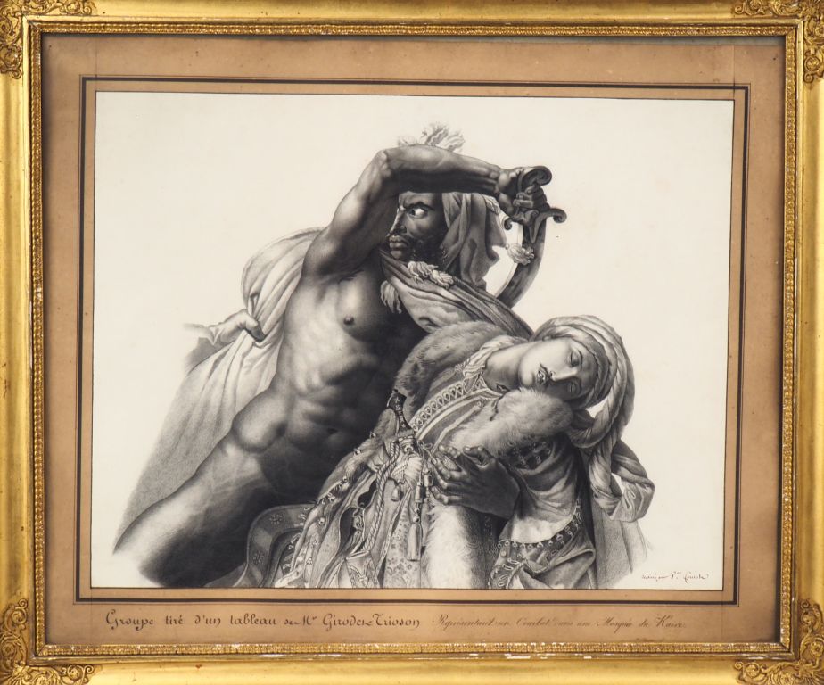 Ecole Française XIXème d'après un tableau de Giraudet Trioson. "combat dans une mosquée du Caire" Dessin au fusain. Dim. à vue : 43,5 x 56 cm