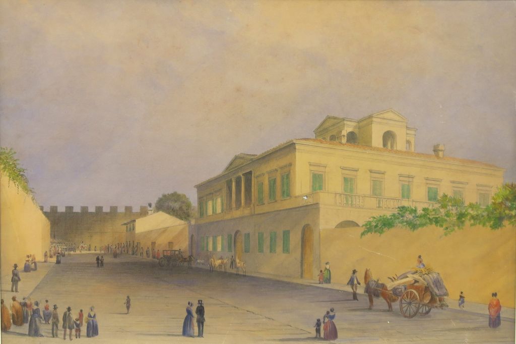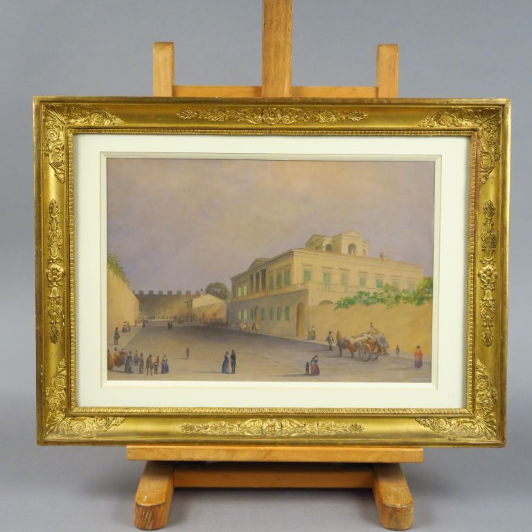 Ecole française XIXème "Vue de ville animée" Dessin aquarellé. Dim. à vue : 24 x 35,5 cm
