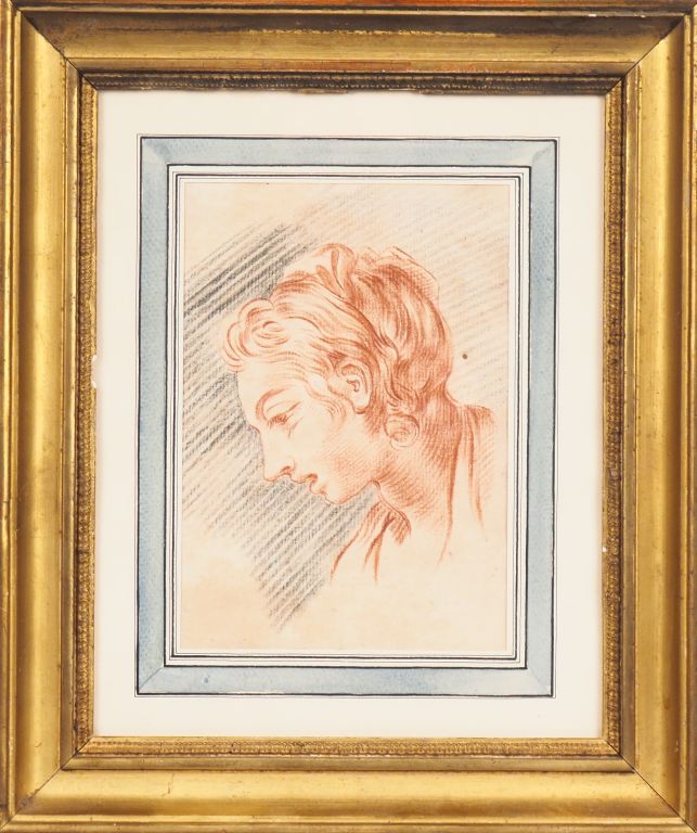 Ecole française XVIIIème. "Etude de profils de jeunes femmes". 2 dessins à la sanguine. Dim. 19 x 13 cm. Dim. 18,5 x 14 cm.