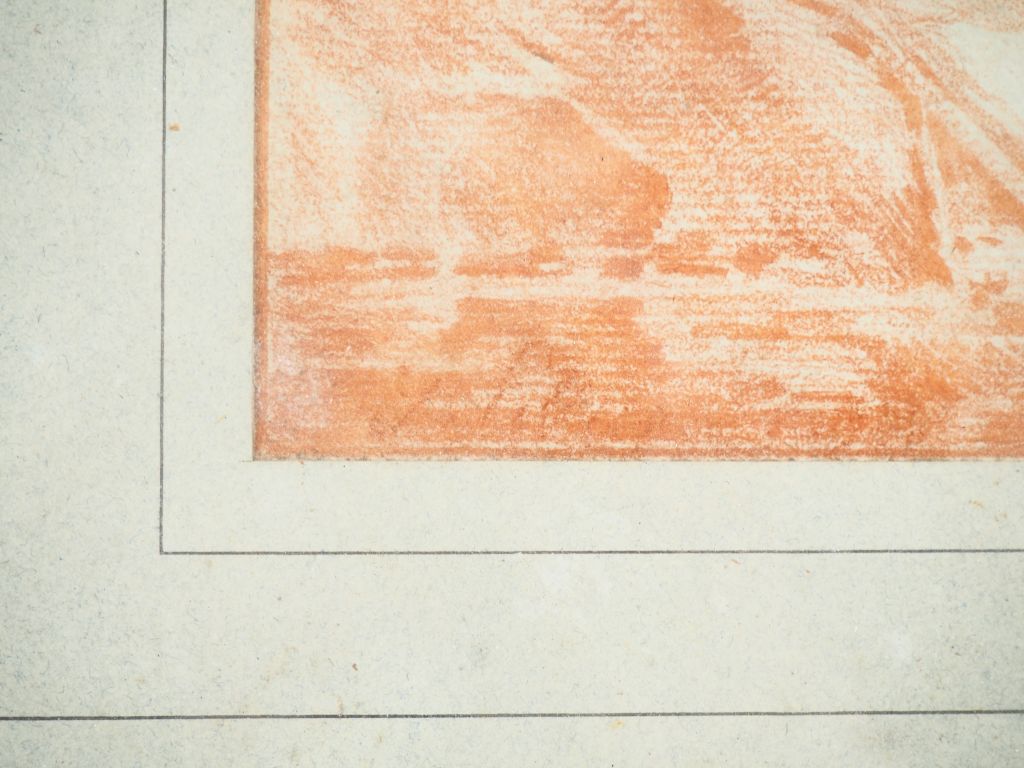 Ecole française XVIIIème. "paysan berger et ses chèvres" Dessin à la sanguine, signé en bas à gauche Dim. à vue : 13 x 19 cm