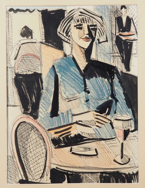 Lot de Ecole française XXème. Dessin à l'encre "Elégante au bistrot" Dim. 39 au prix de 20 à 40 € en vente aux enchères par l'hôtel des ventes Primardeco
