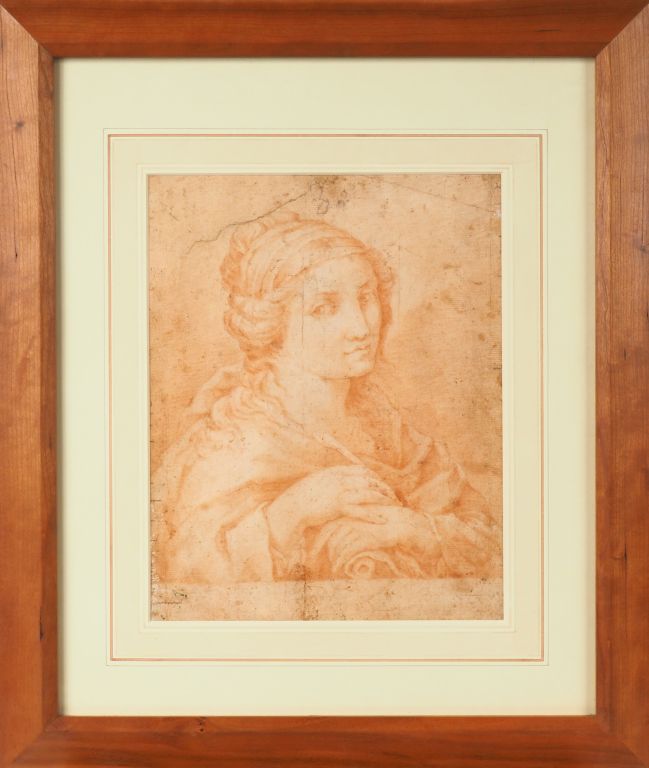 Ecole italienne XIXème. "portrait de jeune femme" Dessin à la sanguine Dim. 26,5 x 21 cm