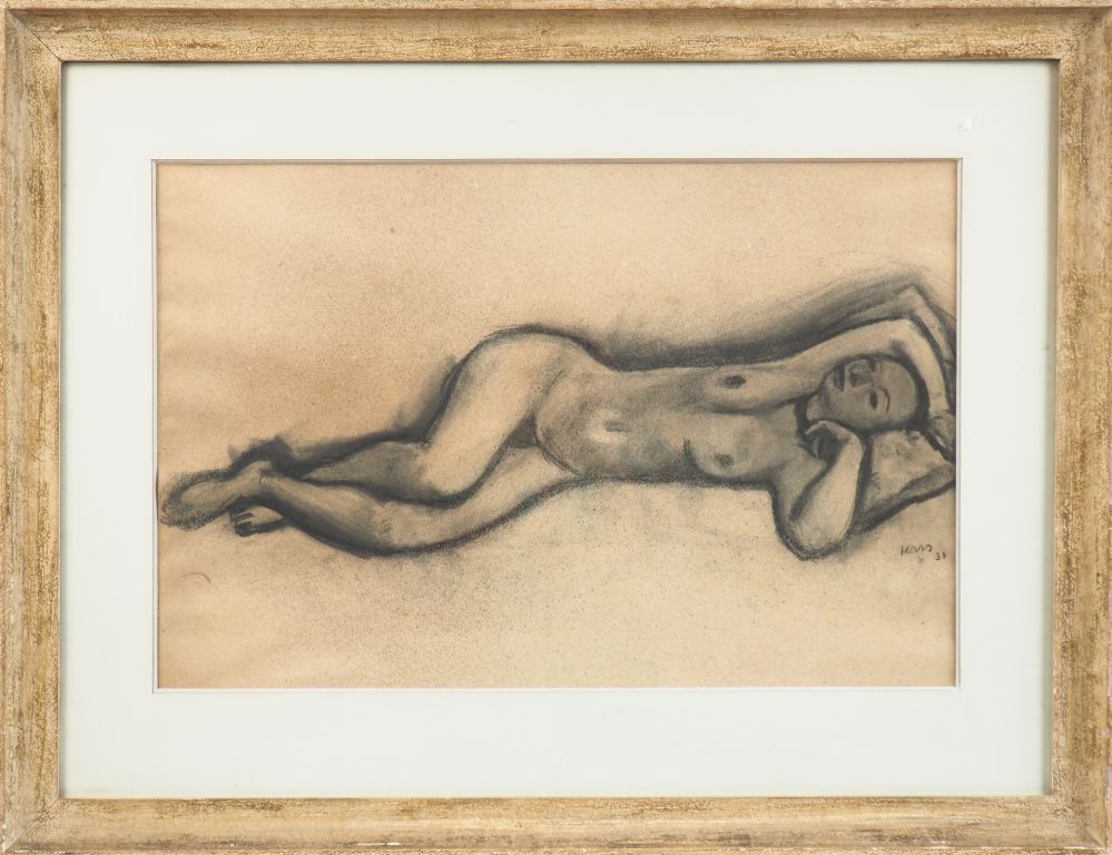 Georges KARS. "Nu allongé". Dessin au fusain, signé en bas à droite et daté 33. Dim, 41 x 62 cm.