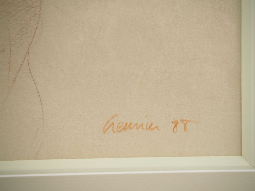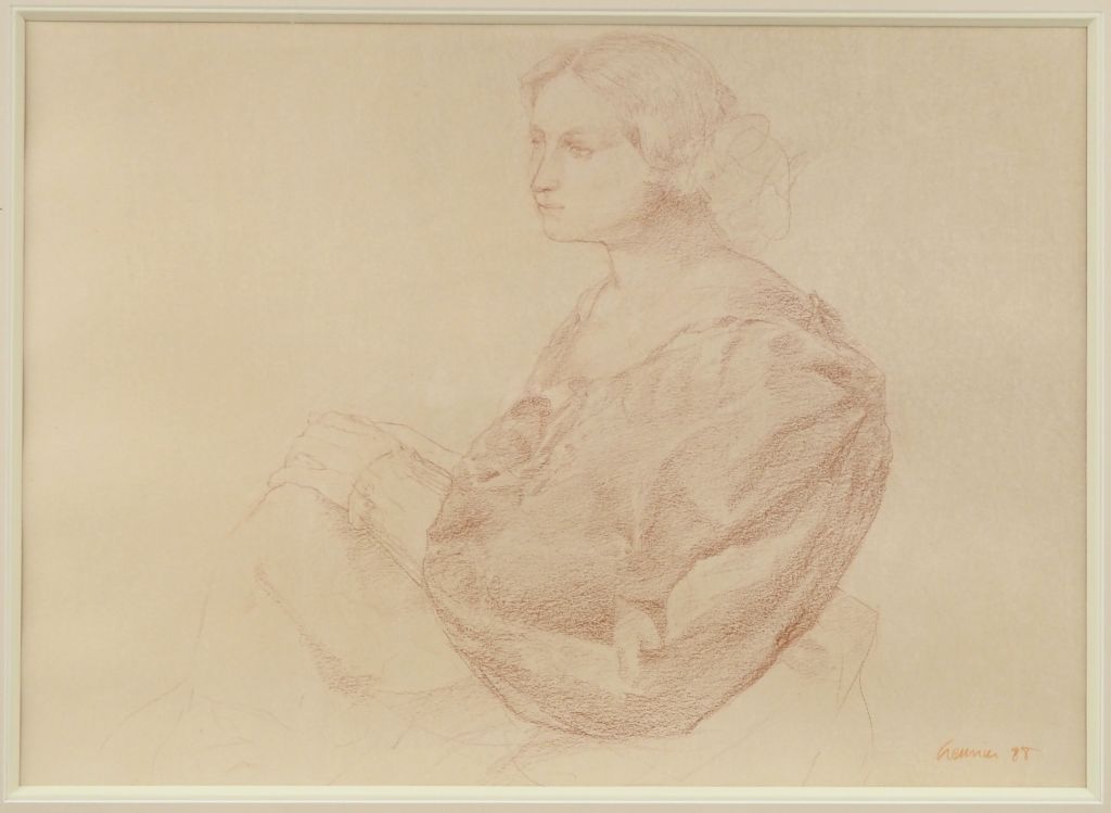 GREUNIER. "Portrait de jeune femme mélancolique" Dessin au fusain signé en bas à droite et daté 88 Dim. 32,5 x 42,5 cm