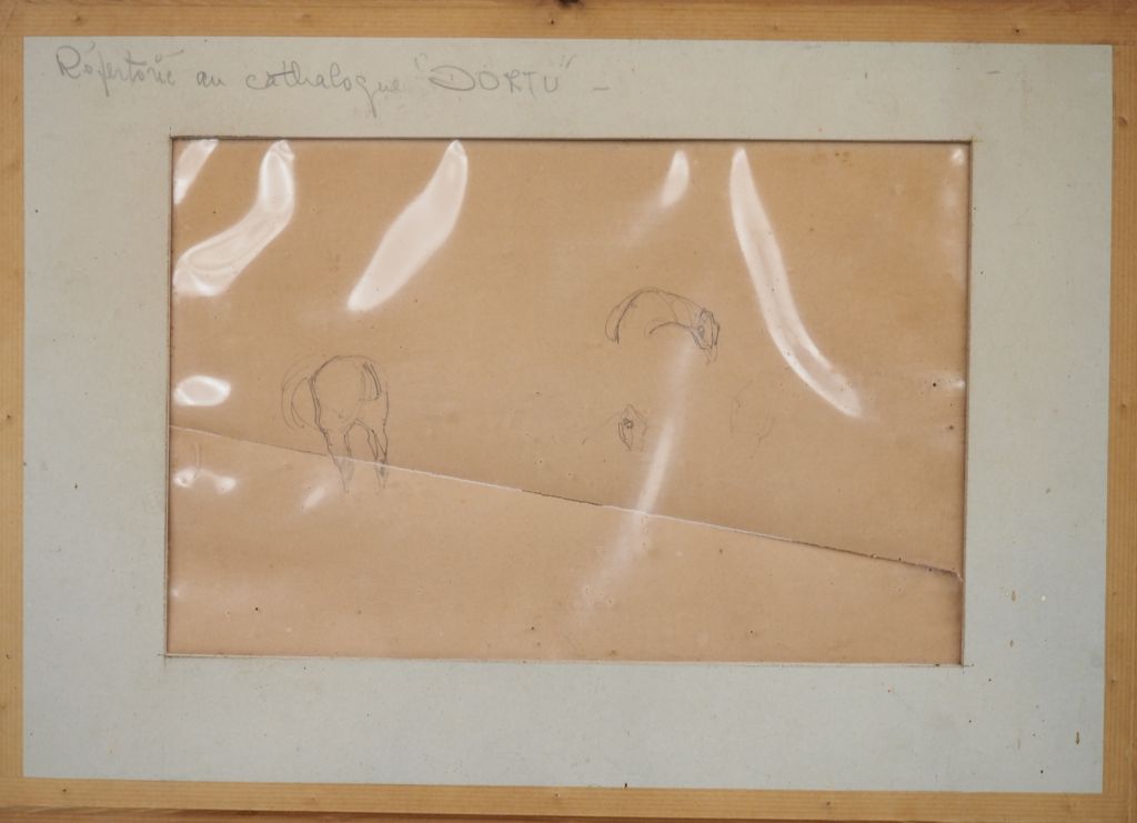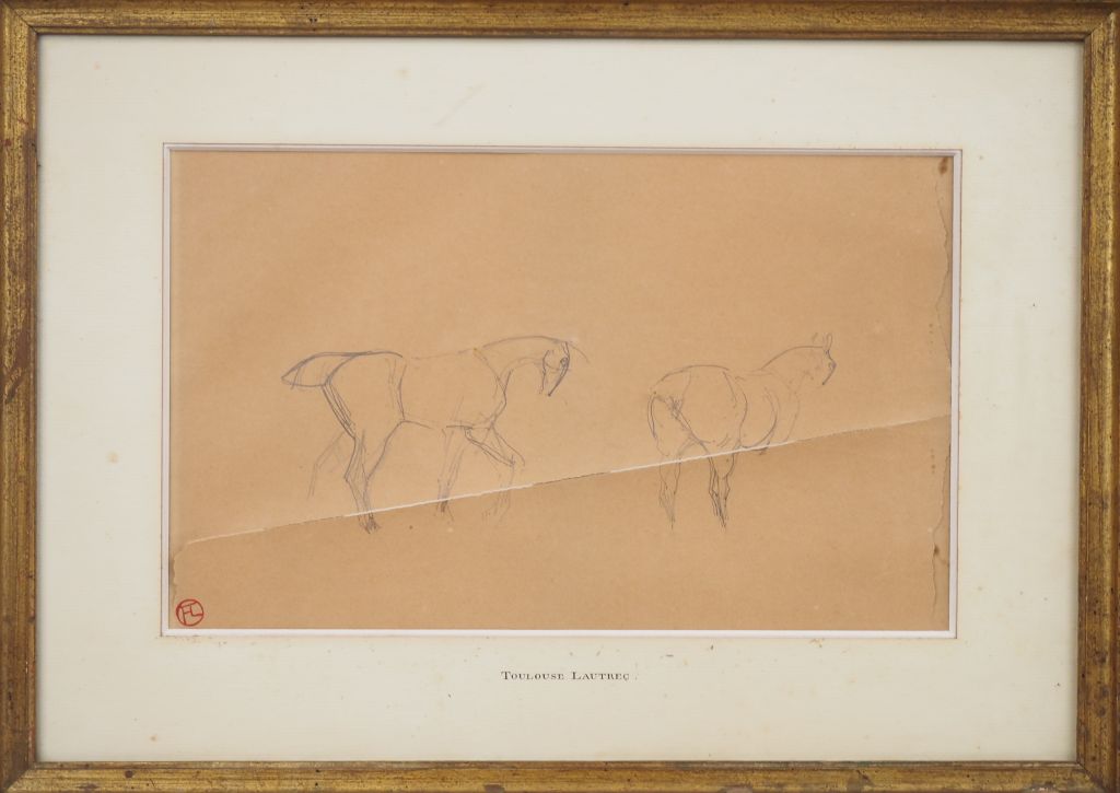 Henri de TOULOUSE-LAUTREC. "Etude de chevaux". Dessin au crayon double face, signé du monogramme en bas à gauche (déchirures) Dim. 20 x 33 cm