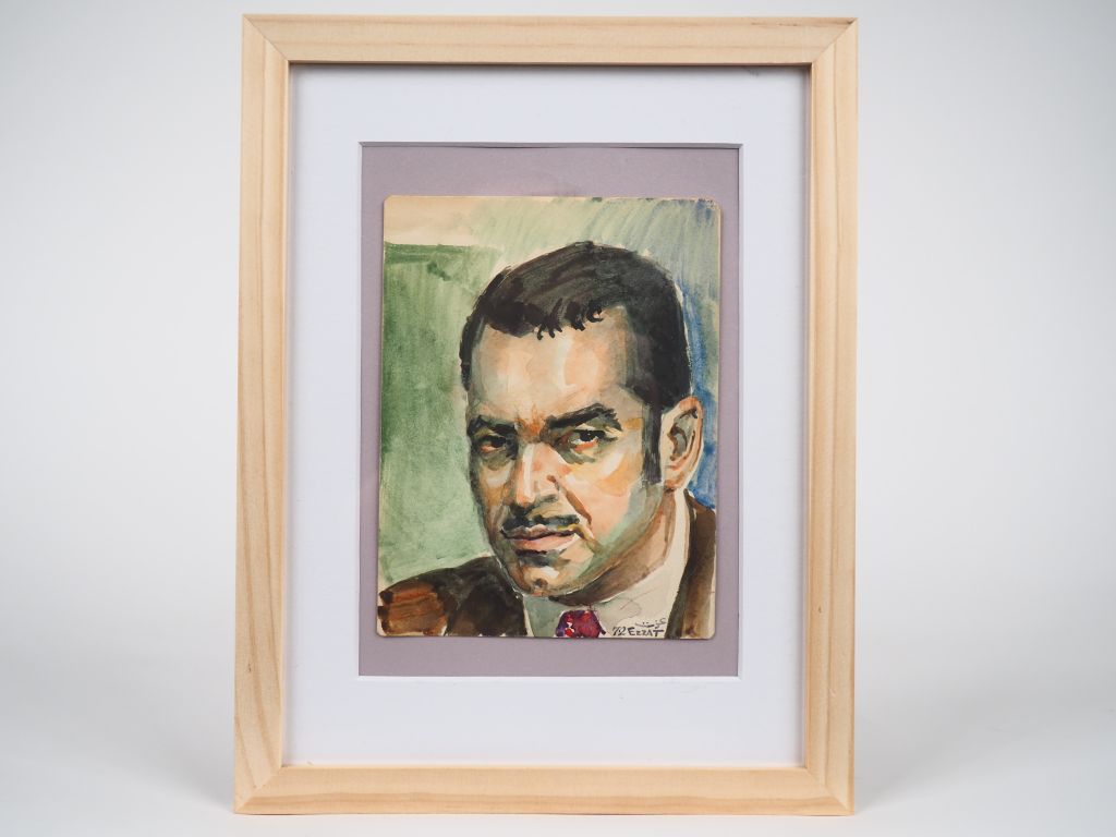 Ibrahim EZZAT. "Portrait d'homme". Aquarelle, signée en bas à droite et datée 1972. Dim. (à vue) : 14,5 x 11 cm.