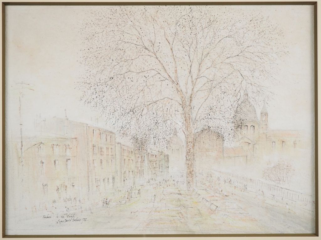 Jean David SABAN. "Le platane, Toulouse rue Valade" Dessin signé en bas à gauche et daté 1788 Dim. À vue : 27 x 37 cm