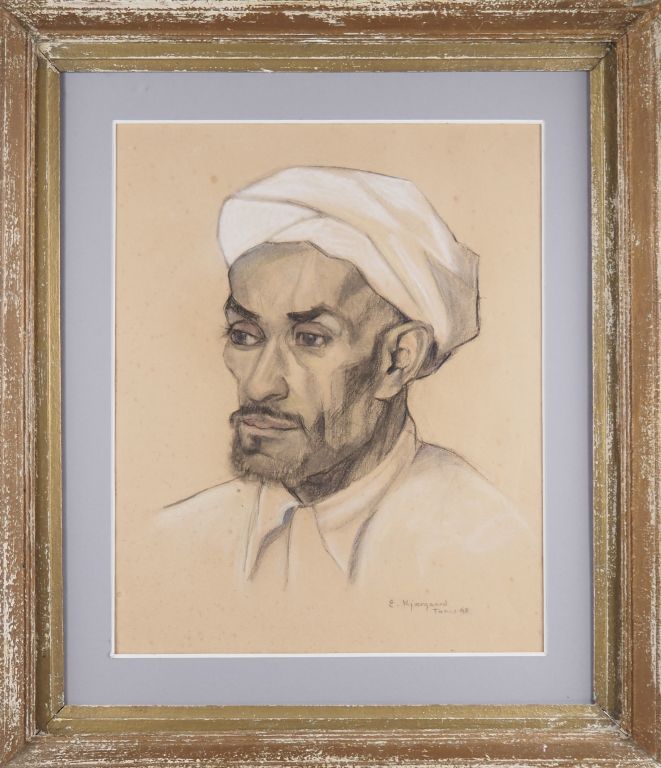 KJÆRGAARD "portrait d'homme" Dessin, signé en bas à droite, situé à Tunis et daté 48 Dim. 53,5 x 43 cm (rousseurs)