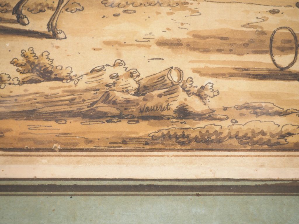 Lot de LANCRET. "Campement" Dessin aquarellé signé en bas au centre Dim. 28 x au prix de 60 à 80 € en vente aux enchères par l'hôtel des ventes Primardeco