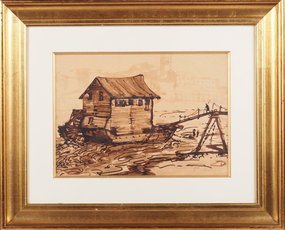 Lot de ? "le bateau lavoir" Encre Dim. À vue : 23,5 x 33,5 cm au prix de à € en vente aux enchères par l'hôtel des ventes Primardeco