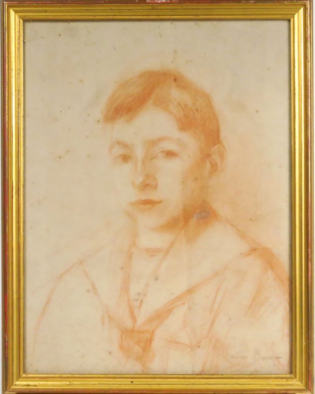 Lot de Léon. BONNAT. "Portrait de jeune garçon". Sanguine, signée en bas à dr au prix de 100 à 200 € en vente aux enchères par l'hôtel des ventes Primardeco