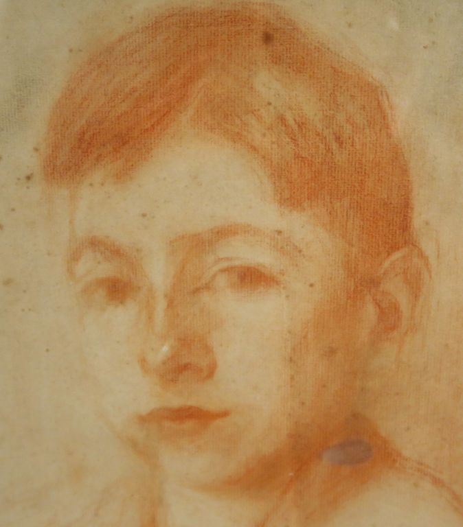 Léon. BONNAT. "Portrait de jeune garçon". Sanguine, signée en bas à dr...