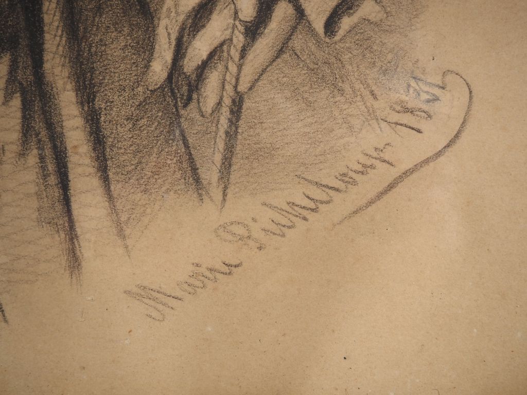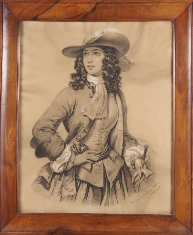 Marie PICHELOUP. "portrait de jeune fille au chapeau" Dessin signé en bas à droite et daté Dim. À vue : 55,5 x 44 cm