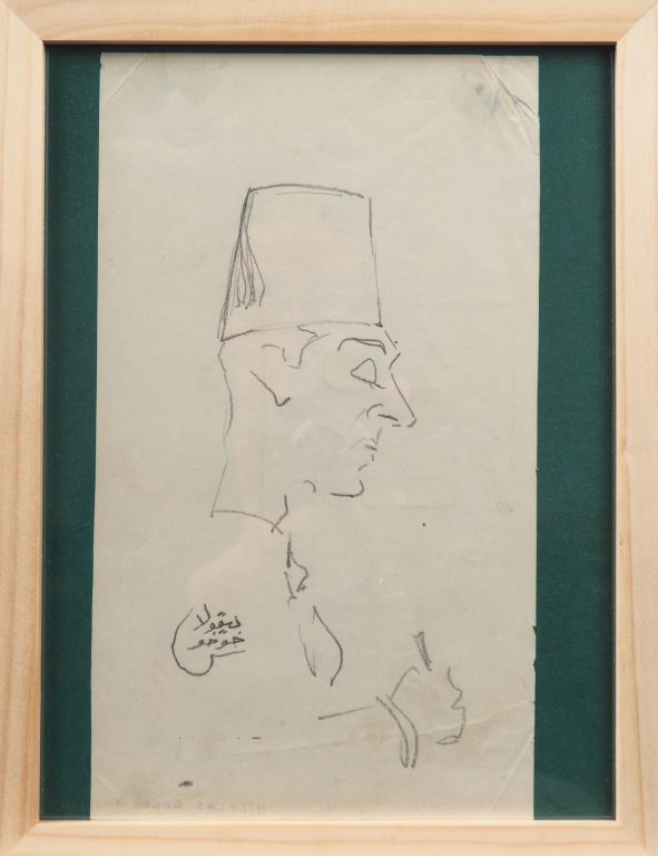 Nicolas GOGOS. "Caricature de Charles Zahar". Dessin, signé en bas à droite. Dim. (à vue) : 23 x 13 cm. (Déchirure)