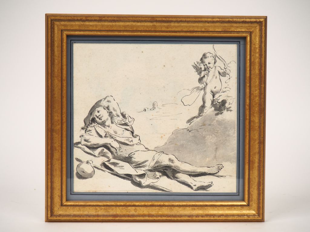Lot de NOVELLI. (attribué à). "L'amour endormi" Dessin à la plume et au lavis au prix de 100 à 150 € en vente aux enchères par l'hôtel des ventes Primardeco