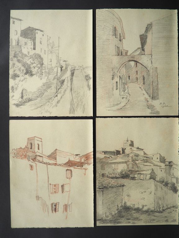Lot de Petit recueuil de dessins comprenant 4 vues de villages. Dim. 31,5 x au prix de 40 à 60 € en vente aux enchères par l'hôtel des ventes Primardeco