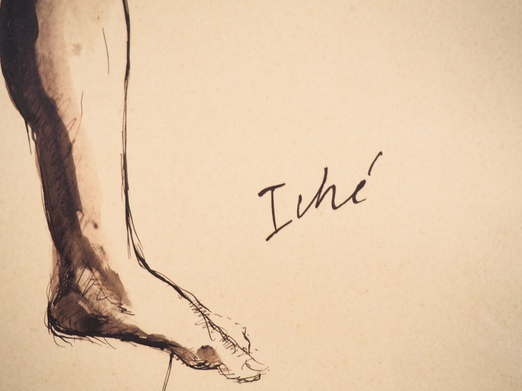 René ICHE. "Etude de nue". Dessin à l'encre, signé en bas à droite. Dim. 49 x 32 cm.
