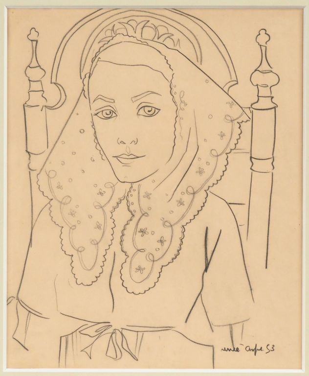 Renée ASPE. "Portait de femme". Dessin signé en bas à droite. Dim. (à ...