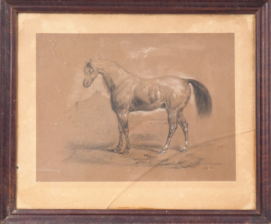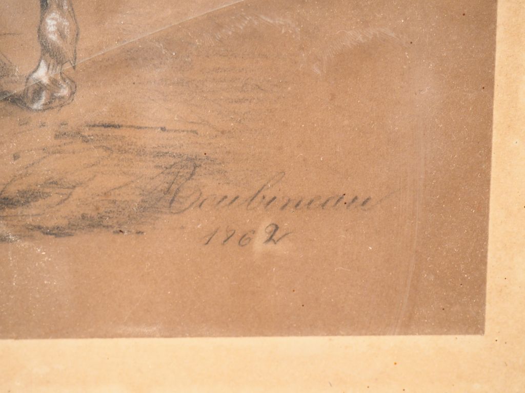 ROUBINEAU. "La jument". Dessin au crayon rehaussé de craie signé en bas à droite et daté 1762. Dim. 30 x 40,5 cm.