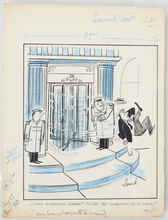 SEMPE. "Fais attention, Charles" Encre et crayon Dim. 32.5 x 24,5 cm Experts : Frédérick Chanoit et Pauline Chanoit Tel: 01.47.70.22.33. Email: frederic.chanoit@orange.fr