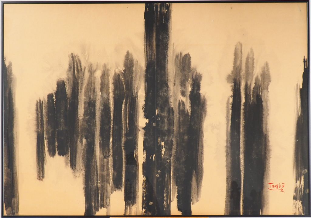 T'ANG Haywen. "Composition abstraite". Encre sur papier, signée en bas à droite. Dim. 69,5 x 99,5 cm.
