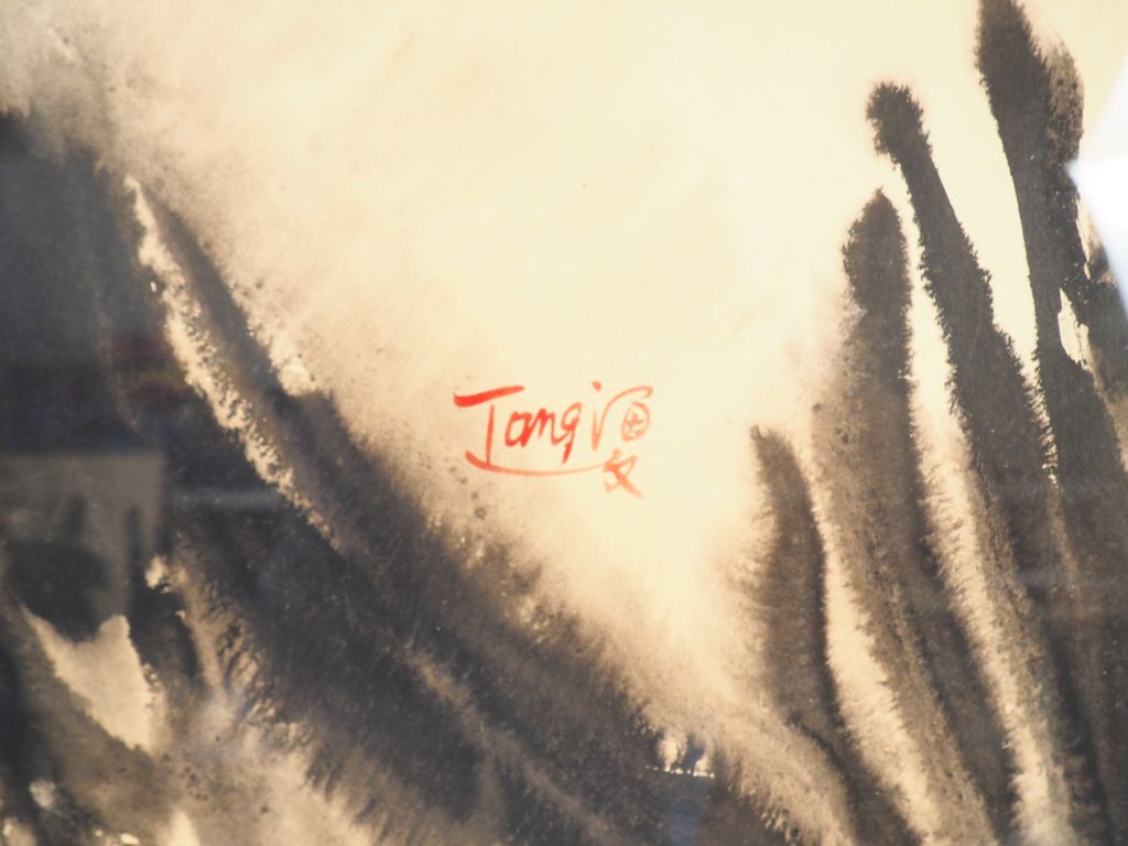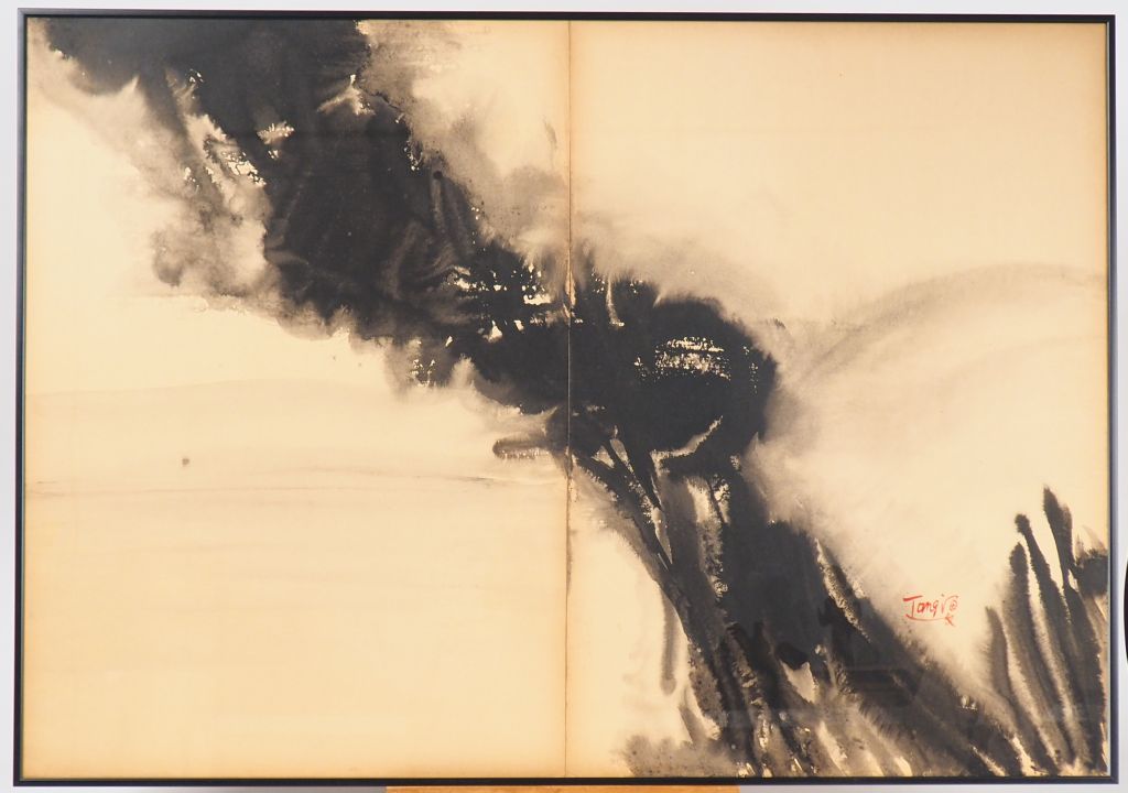 T'ANG Haywen. "Composition abstraite". Encre sur papier, signée en bas à droite. Dim. 69,5 x 99,5 cm.