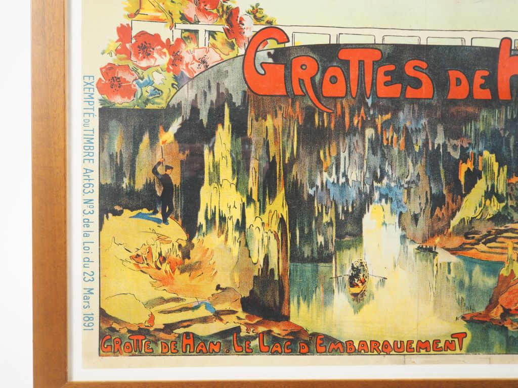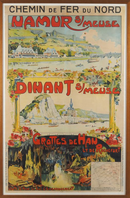 Affiche "Chemin de fer du Nord Namur sur Meuse, Dinant sur Meuse" Grottes de Han et de Rochefort. Dim 106 X 67,5 cm.
