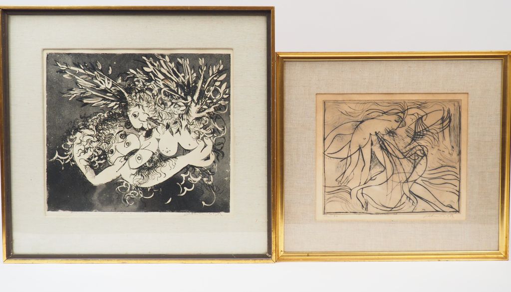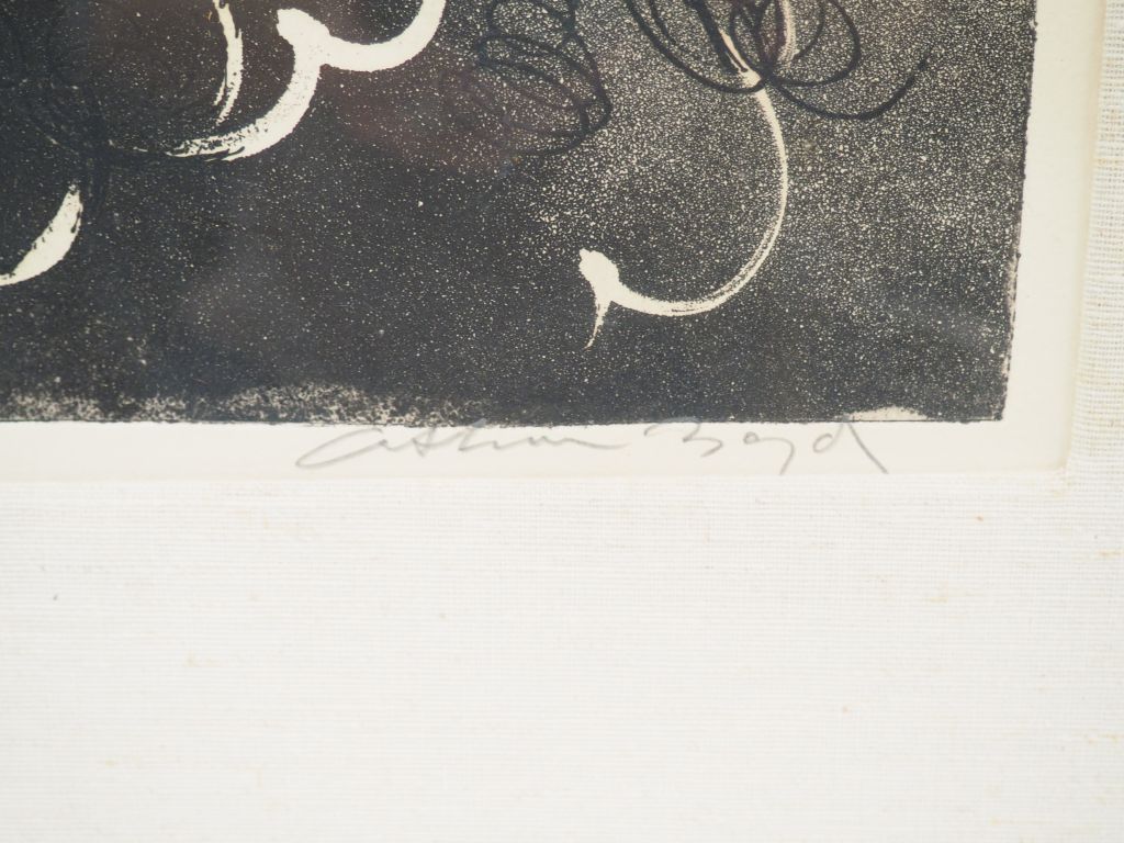 Arthur BOYD "Composition abstraite", "Figure with Brasso Tin". Deux différentes lithographies, signées. Dim. 36 x 40,5 cm et 27,5 x 32,5 cm on y joint le catalogue raisonné