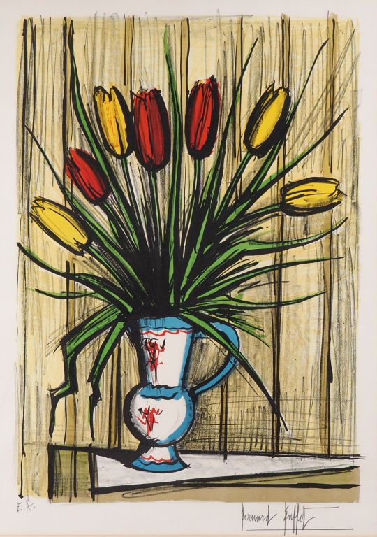 B. BUFFET. "le bouquet de tulipes" Epreuve d'artiste, contresignée en bas à droite