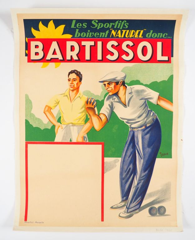 BARTISSOL. Affiche par Irab, imprimerie Moullot, circa 1930. Condition : A- Entoilée. Dim. : 80x60 cm.