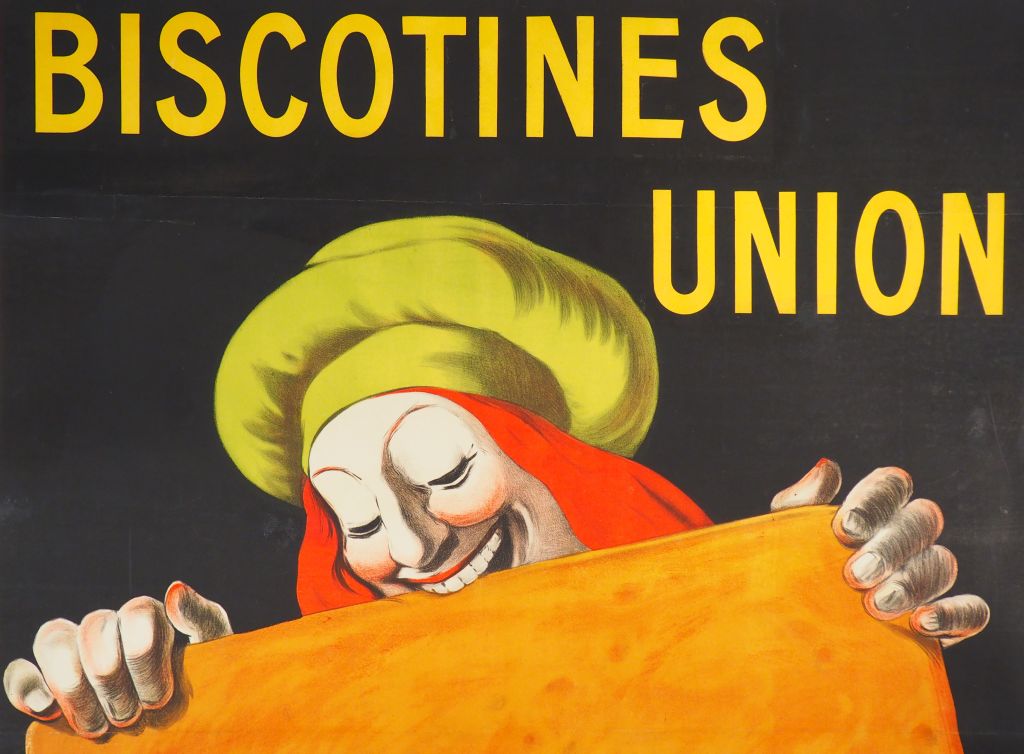 BISCOTINES UNION. Affiche par Lenonetto Cappiello, imprimerie Vercasson, 1906. Condition : A- Entoilée. Dim. : 140x100 cm. 850/950