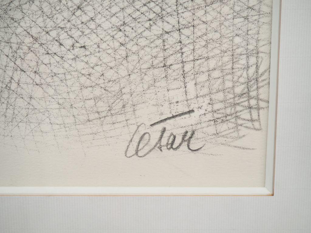 CESAR. "Hommage à Marie Curie". Lithographie en couleur contresignée en bas à droite et numérotée 100/300. Dim. (à vue) : 71,5 x 56,5 cm.