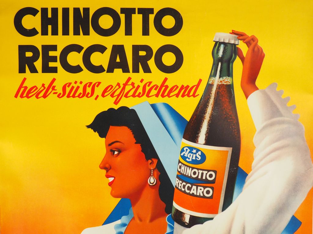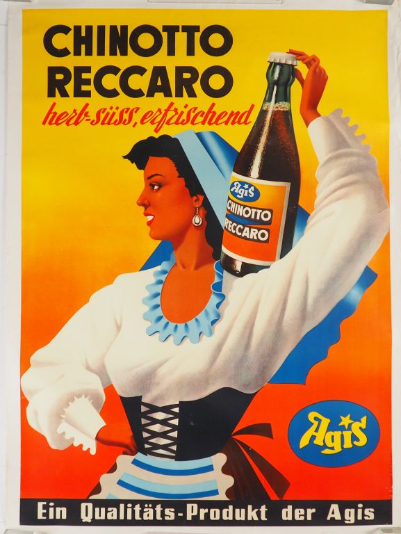 CHINOTTO RECCARO. Affiche anonyme, imprimerie Hug Zurich, circa 1950. Condition : B+ Entoilée. Dim. : 120x80 cm.
