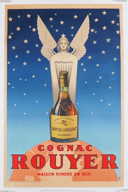 COGNAC ROUYET. Affiche monogrammée TH, imprimerie Union Parisienne de Publicité, 1945. Condition : A Entoilée. Dim. : 120x80 cm.