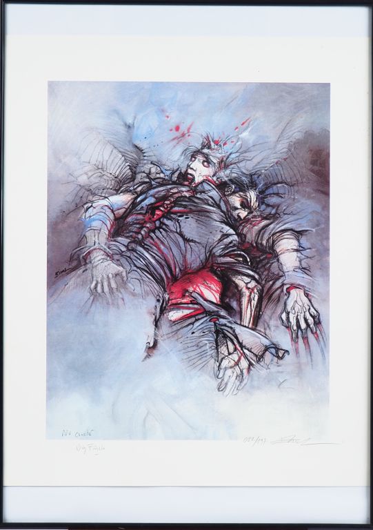 ENKI BILAL. 'Nu couché'. Lithographie, signée et numérotée 22/197. Porte le cachet des éditions Christian Desbois. Dim. 60 x 50 cm.