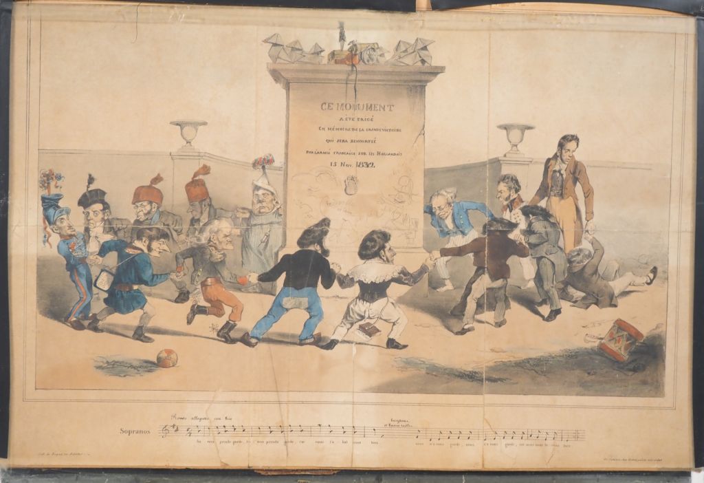Ensemble de 7 gravures sur l’Empire comprenant des caricatures, des scènes de bataille… (accidents)