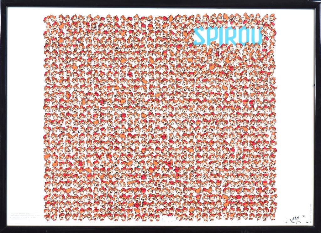 FRANQUIN. 'Les 1000 têtes de Spirou' Sérigraphie numérotée 2/3000. Dim. 49 x 69 cm.