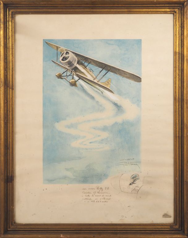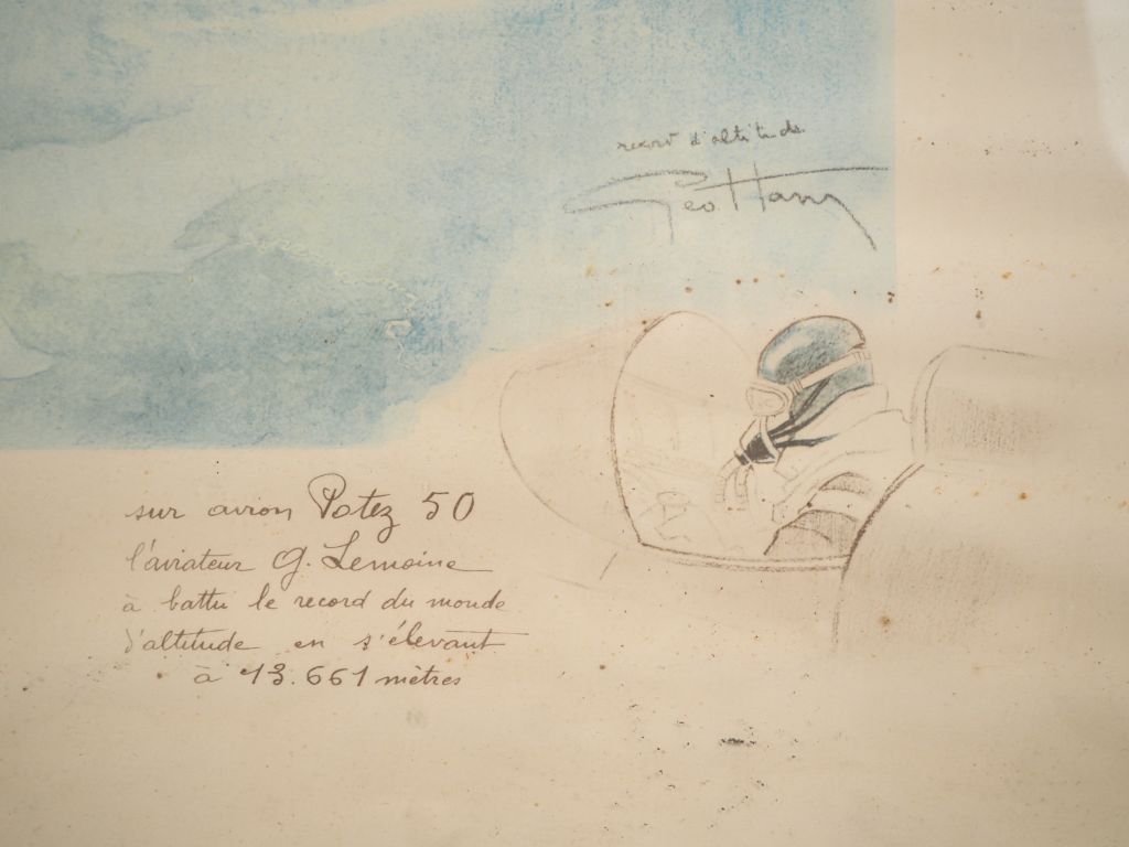 Lot de GEO HAM. "l'avion Potez 50" Lithographie imprimée par Courteau au prix de 50 à 80 € en vente aux enchères par l'hôtel des ventes Primardeco