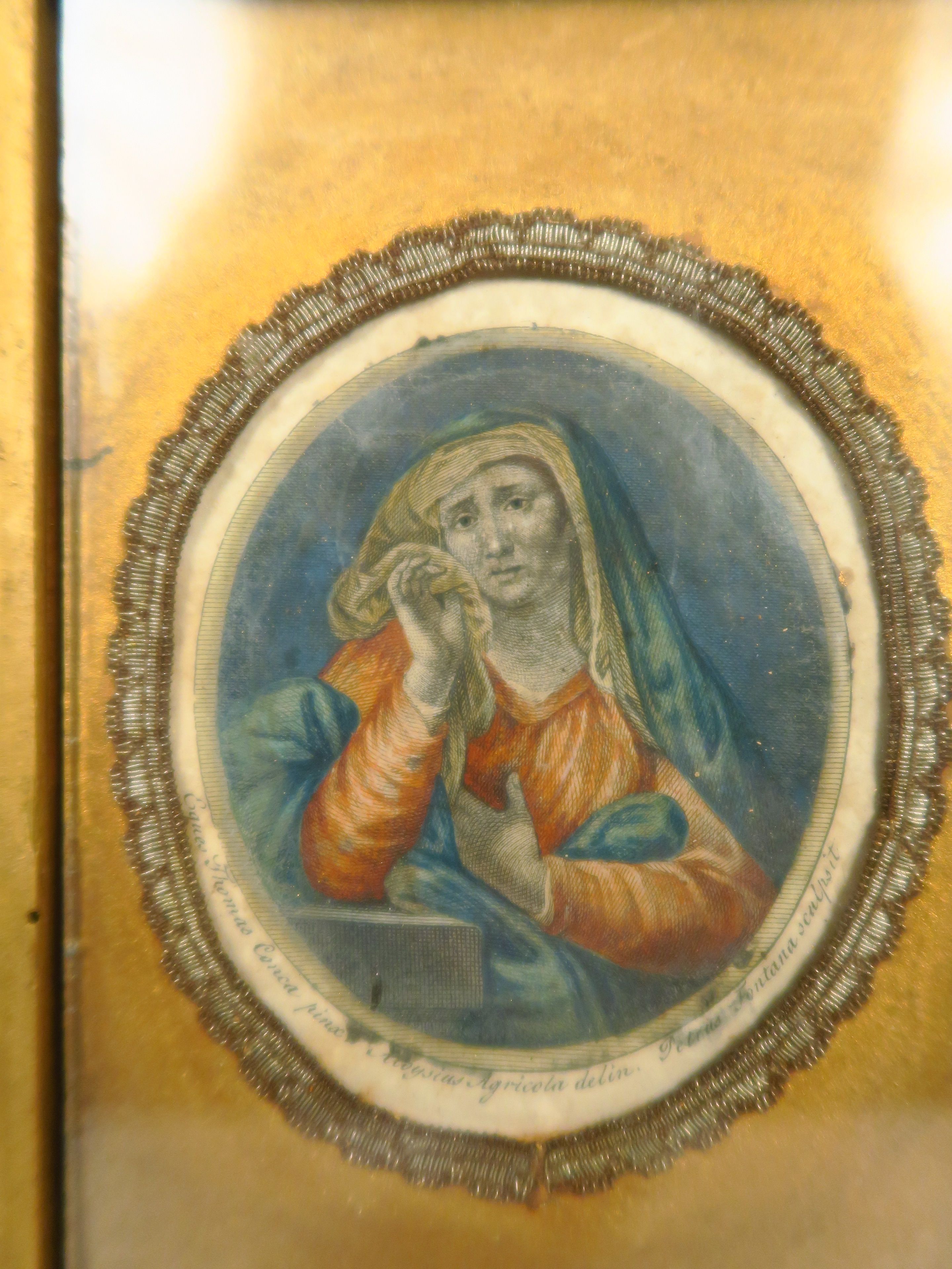 Gravure rehaussée d'après Canca "Mater dolorosa" Dans un cadre en bois et stuc doré. 32 x 26,5 cm