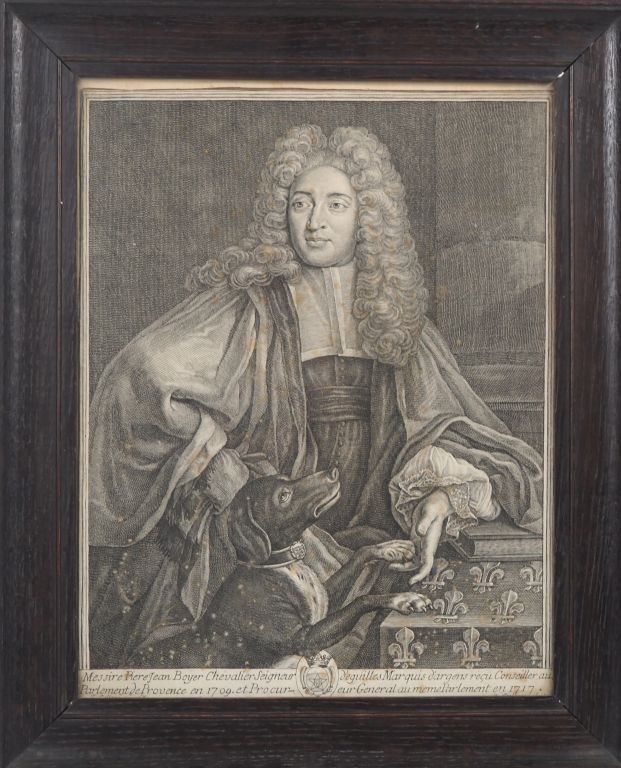 Gravure XVIIIème en noir, portrait de "Messire Pierre Jean Boyer". Dim. (à vue) : 36 x 27,5 cm.