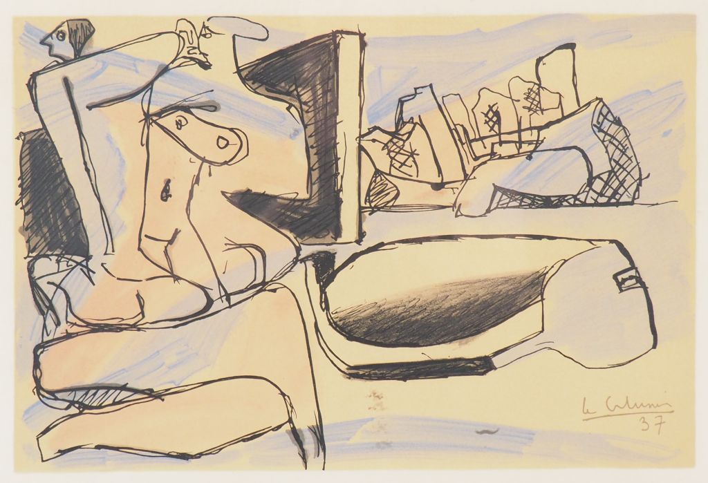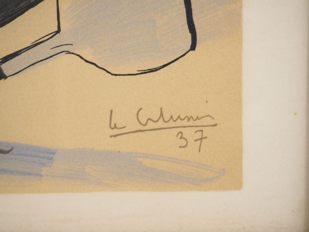 LE CORBUSIER. "Composition". Lithographie en couleur signée en bas à droite et datée 1937. Dim. (à vue) : 25 x 37 cm.