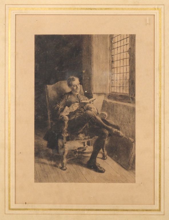 MEISSONNIER. Gravure en noir "la lecture" dans un cadre de style Louis XVI en bois et stuc doré. Dim. du cadre : 62,5 x 50 cm