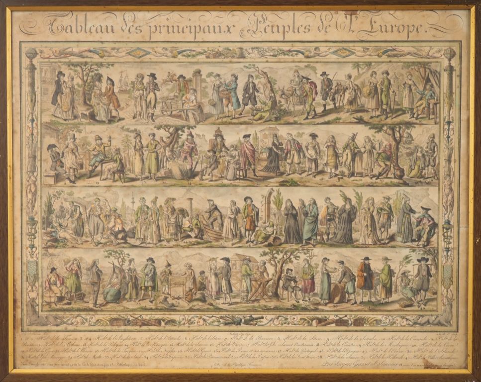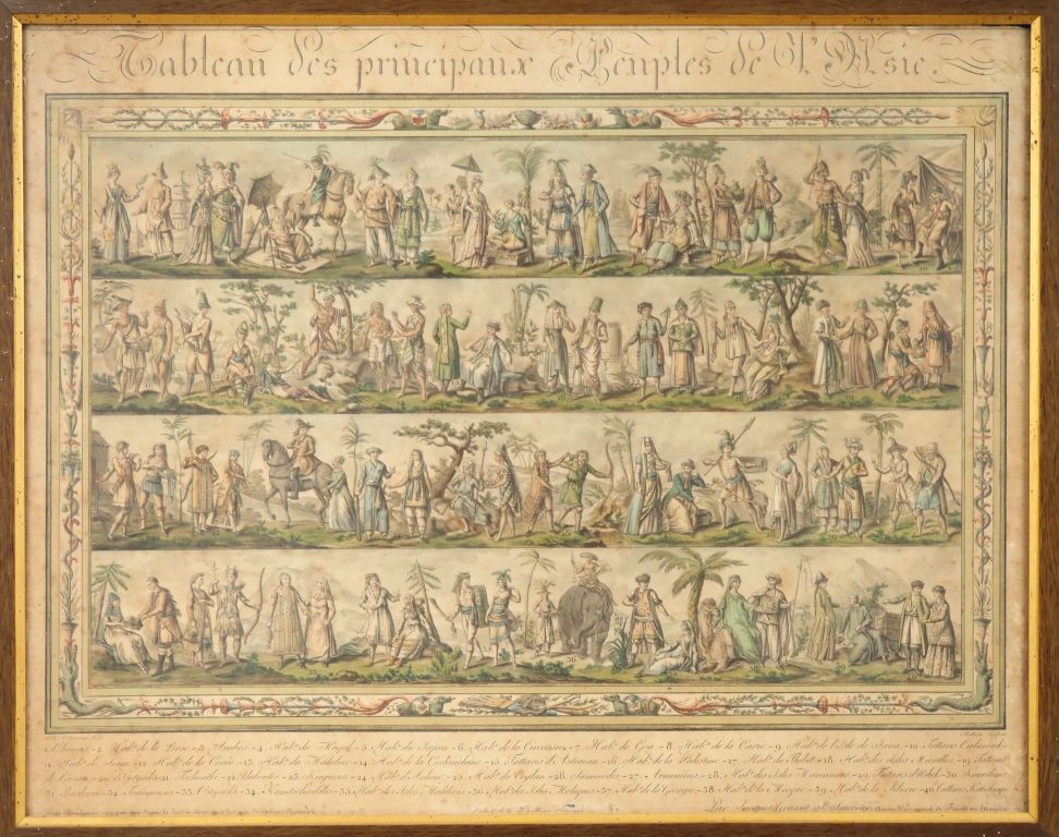 Paire de gravures en couleur XIXème. "Tableau des principaux peuples de l'Asie et de l'Europe"
