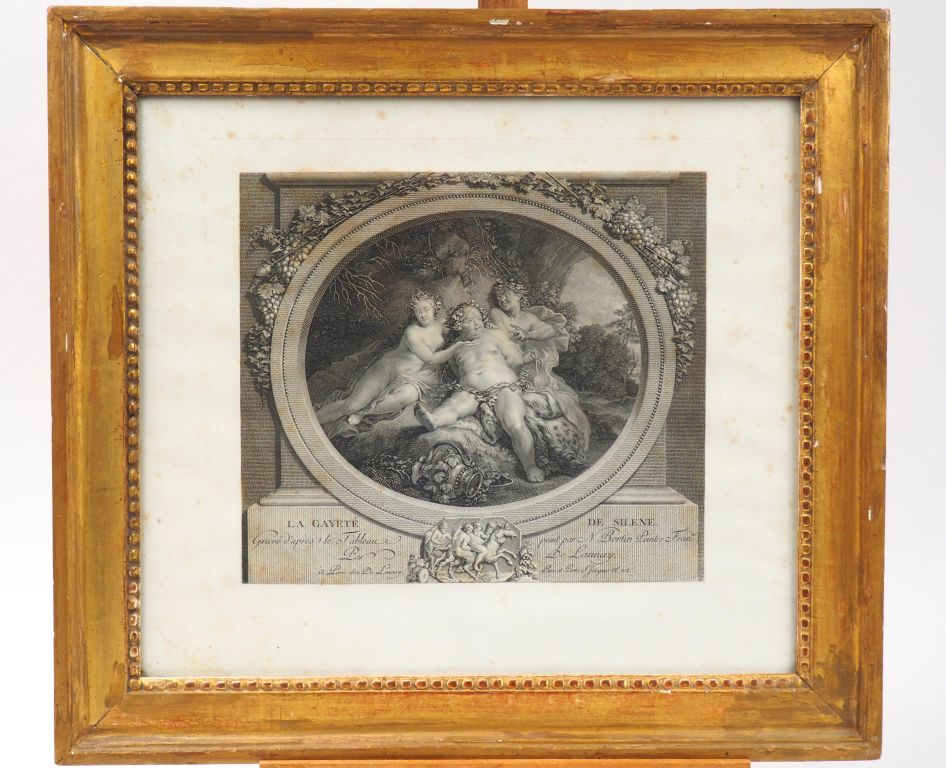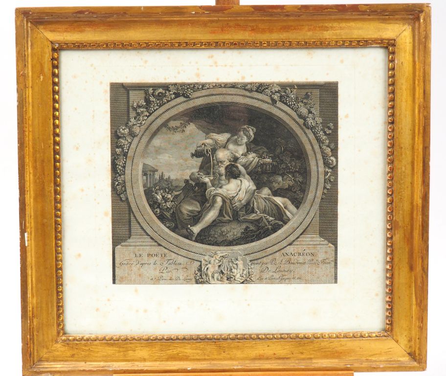 Paire de gravures en noir "La gayeté de Silene" et "Le poète Anacréon"...