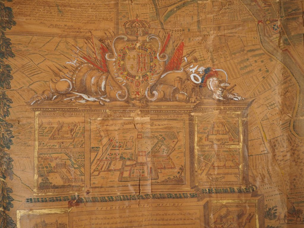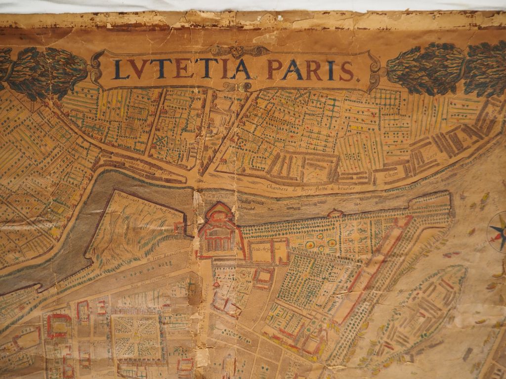 Lot de Plan de Paris XVIIIème rehaussé. Dim. 133 x 139 cm (mauvais état) au prix de 100 à 150 € en vente aux enchères par l'hôtel des ventes Primardeco