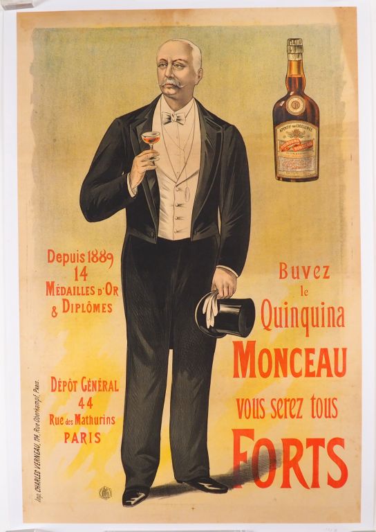 QUINQUINA MONCEAU. Affiche par OGE (non signée), imprimerie Charles Verneau, 1890. Condition : A- Entoilée. Dim. : 120x80 cm.