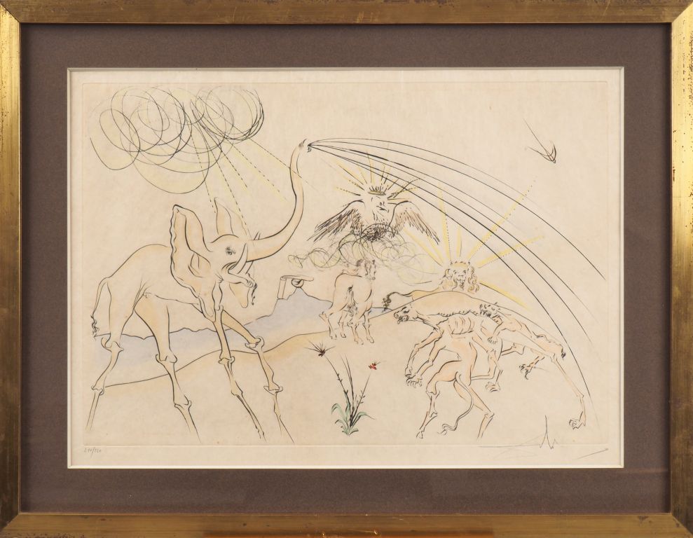 Salvador DALI. Lithographie en couleur sur papier Japon, contresignée en bas à droite et numérotée 210/250. Dim. (à vue) : 43 x 60 cm.